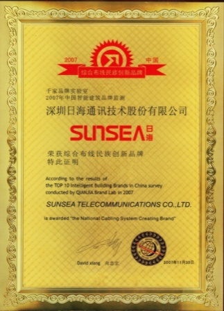 2007年11月29日~30日,BB贝博艾弗森公司智能综合布线受邀前往上海光大会展中心酒店,参加由千家网筹办的“2007年第八届中国国际建筑智能化峰会暨颁奖典礼”,获得了“布线民族创新品牌”特别奖项。